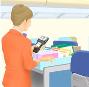 Sử dụng như một POS di động để quản lý việc bán hàng và hàng trong kho trên toa hoặc trong máy bay. Việc sử dụng các thiết bị đầu cuối nhỏ gọn, di động có thể giúp quản lý bán hàng và hàng trong kho dựa trên việc kiểm soát từng mặt hàng.