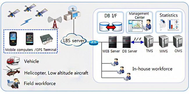 Location Based Service (LBS) Provide real-time tracking system to find out the current location and situation of vehicle, field force worker, low altitude aircraft and any other moving mobile. And it will enable you to report and command through the wireless internet.