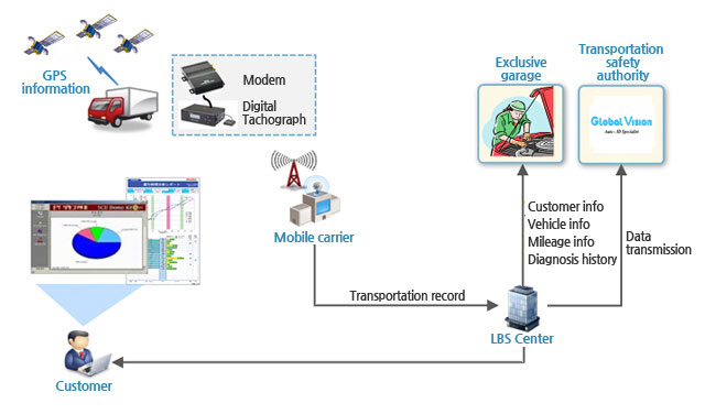 DTG System (Digital Tachograph) Receive the navigational information through the DTG system and analyze this information to Provide you with a safe and an eco-driving environment. Furthermore, by decreasing a fuel and maintenance fee to strength your vehicle management efficiency.